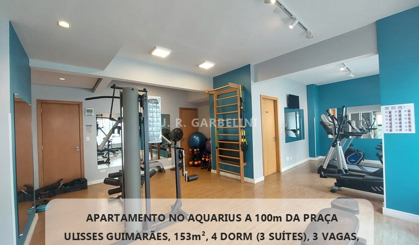 Excelente apartamento, na melhor localização do Aquarius, com 153m², andar alto, sol da manhã, vista permanente e livre, 4 amplos dormitórios (3 suítes - máster com sacada e ar condicionado), armários planejados em todos os quartos, ampla sala (34m²) para 2 ambientes, sacada gourmet, cozinha muito espaçosa (15m²) e com despensa, lavabo e banheiro de serviço.